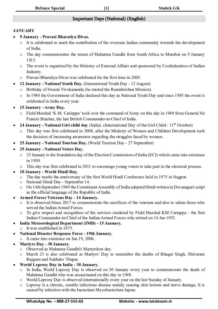 10. Important Days (National)—Static GK—Eng