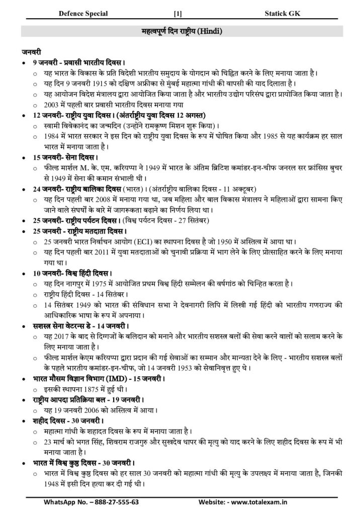 10. Important Days (National)—Static GK—Hindi