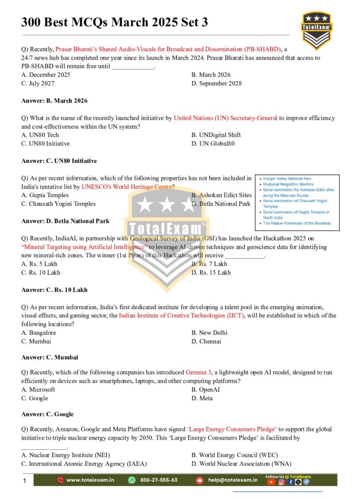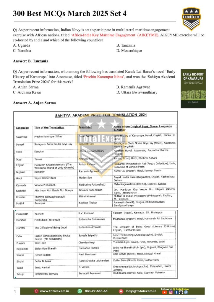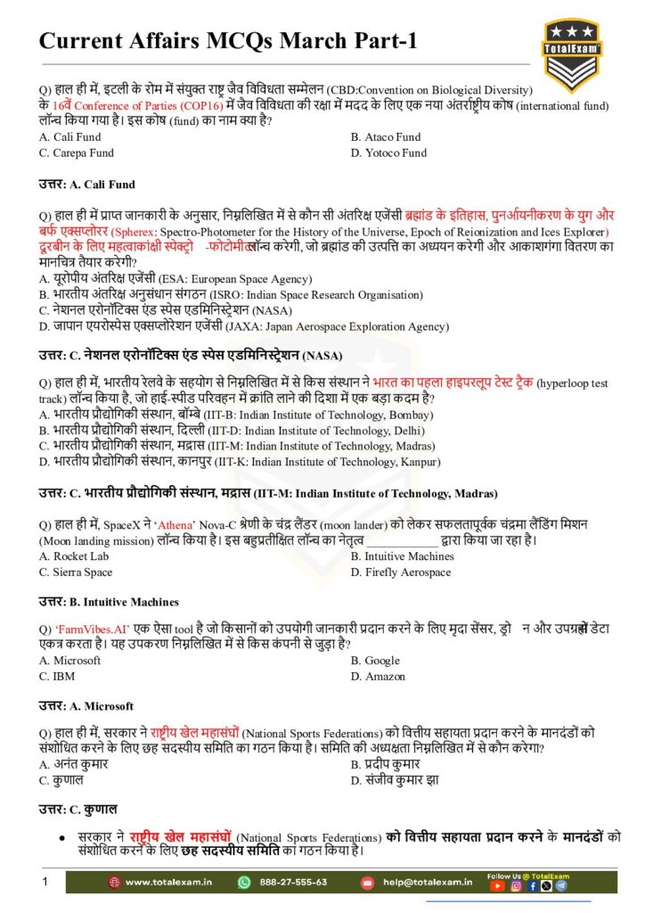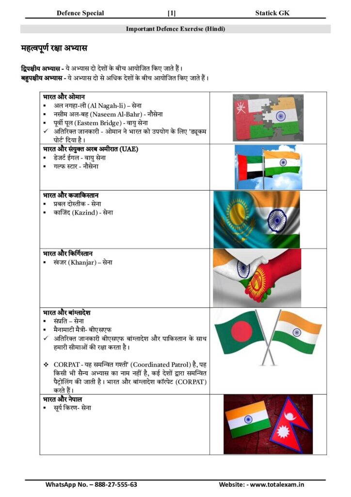 1. Important Defence exercise—Static GK—Hindi